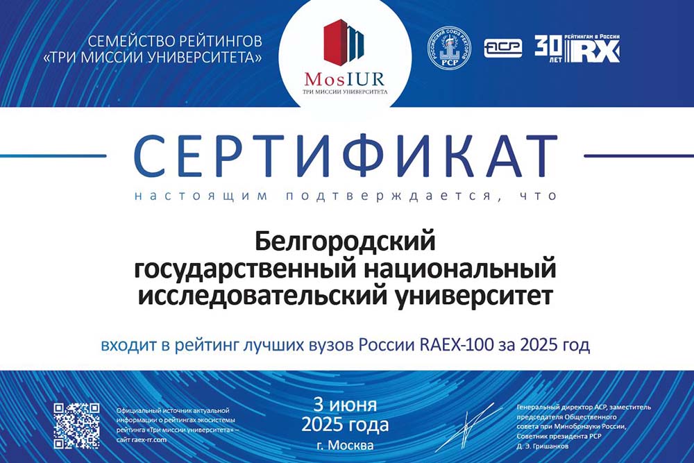 НИУ «БелГУ» нарастил присутствие в первых лигах Предметного национального агрегированного рейтингаРейтинг ежегодно составляется Агрегатором независимой оценки высшего образования. | |