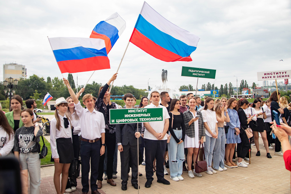 Праздник российского триколора отметили в НИУ «БелГУ»Торжественная линейка, посвящённая Дню государственного флага Российской Федерации, объединила на университетской площади студентов-первокурсников из всех институтов и колледжей Белгородского госуниверситета. | |