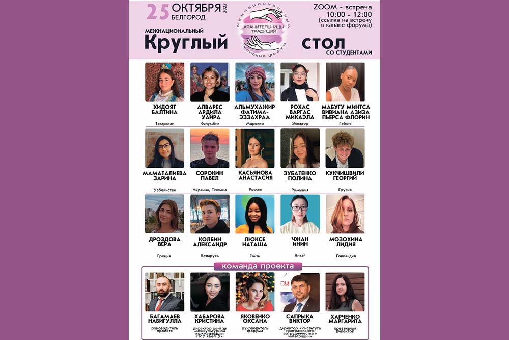 Традиции объединяютCтуденты и сотрудники НИУ «БелГУ» приняли участие в круглом столе в рамках Межнационального женского форума «Хранительницы традиций». | |