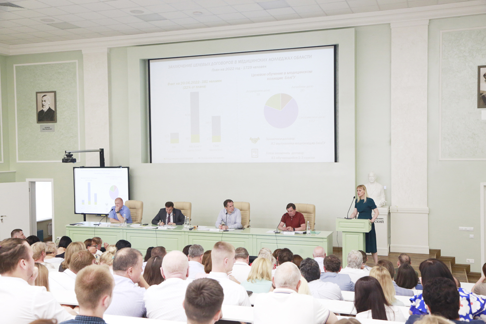 НИУ «БелГУ» обеспечит регион медицинскими кадрамиВ мединституте НИУ «БелГУ» сегодня состоялось совещание губернатора Вячеслава Гладкова и министров здравоохранения и образования области с ректором БелГУ Олегом Полухиным, руководством, студентами и преподавателями мединститута, главными врачами лечебных учреждений области на тему обеспечения региона медицинским кадрами. | |