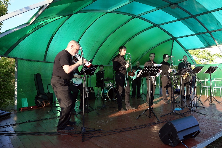 Музыканты сыграли классические композиции: «Охота на тигра», «Он полюбил другую девушку», «Дикую лошадку» Геннадия Бондарева и другие, в которых гармонично сочеталось академическое звучание и, конечно же, импровизация. Вокалистка Екатерина Новикова исполнила джазовые шлягеры – «Мама», «Доктор Джаз» и «Серебряный фокстрот».
