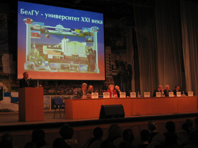 Перед абитуриентами выступил проректор по учебной работе Виктор Ткачев. Виктор Николаевич рассказал об огромных успехах Белгородского государственного университета. Согласно данным агентства «РейтОР», БелГУ занимает 14 место в рейтинге вузов по России и странам СНГ и Балтии.