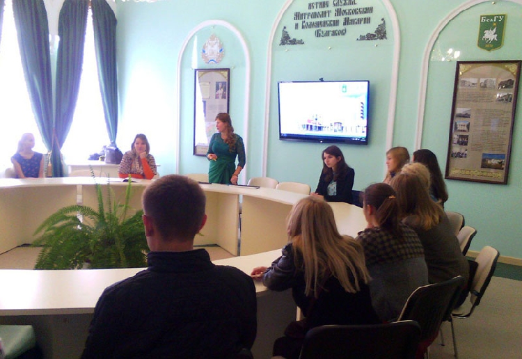 За круглым столом собрались студенты направления «Теология» и «Философия», а также практикующий юрист А. Попова и представитель информационно-правового центра НИУ «БелГУ» Д. Таряник.