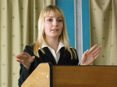 Студентка экономического факультета Ксения Архипенко презентовала основные результаты исследования развития агропромышленного комплекса как основного направления государственной аграрной политики. Ее доклад стал одним из самых содержательных и объемных. Девушка делилась опытом, уверенно отвечала на вопросы зала, опираясь на авторитетные источники. Не остался без обсуждения и вопрос мирового финансового кризиса. О развитиях инфляционных процессов в условиях кризиса рассказала студентка этого же факультета Наталья Воронцова.
