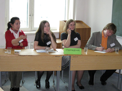 «Дебаты» - это международные интеллектуальные соревнования, широко распространенные в западноевропейских, американских, японских и китайских университетах. Эта игра представляет собой форму диспута между двумя командами, цель которого – аргументировано доказать сопернику и зрителям свою правоту по заданной жюри проблеме. Прения требуют ощутимых усилий, стремления к победе от каждого участника и всей команды в целом.