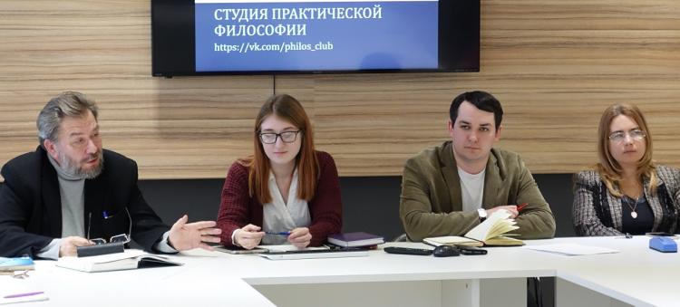 В качестве успешного примера реализации студенческого научного проекта была представлена работа студии практической философии, организаторами которой являются представители студенческого научного общества и преподаватели социально-теологического факультета имени митрополита Московского и Коломенского Макария (Булгакова).