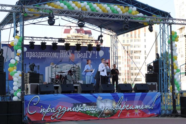 DJ Александр Баев и МС Александр Семёнов завели и развеселили публику. Студенты стали участниками различных конкурсов и получили призы. Завершилась концертная программа традиционной перекличкой: на площади собрались представители всех учебных подразделений университета. Долгожданным событием для студентов, преподавателей и гостей стало выступление вокальной группы «MBAND». Возможность пригласить известную вокальную группу появилась у НИУ «БелГУ» благодаря поддержке президента международного фонда «Поколение», депутата Госдумы РФ, председателя попечительского совета университета Андрея Скоча.