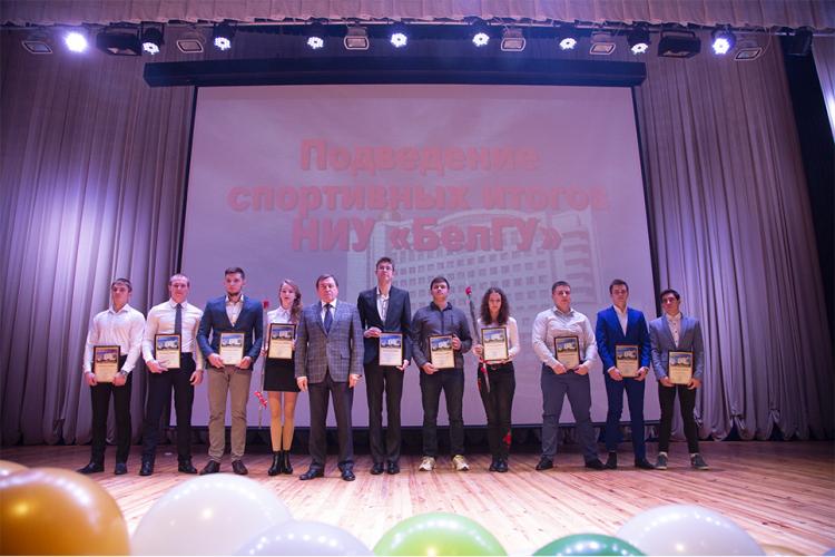 В завершение выступления Олег Николаевич поблагодарил спортсменов, преподавателей и тренеров за непрестанный труд и пожелал им дальнейших побед. Ректор вручил Почётные грамоты НИУ «БелГУ» студентам, достижения которых вписаны в летопись университета. На сцену поднялись победители игровых, интеллектуальных, силовых, летних и зимних видов спорта. Были отмечены высокие результаты в спортивно-массовой работе, всероссийском комплексе ГТО. Благодарности департамента внутренней и кадровой политики Белгородской области Олег Николаевич вручил преподавателям кафедры спортивных дисциплин педагогического института. Отметим, что этот год стал для кафедры юбилейным – ей исполнилось 50 лет. В этот вечер в НИУ «БелГУ» зародилась новая традиция – чествовать десять лучших спортсменов. В их число вошли: Ксения Иванчук, Анжелика Башмина, Рустам Абди Оглы (все армрестлинг), Сергей Лупандин (гиревой спорт), Елизавета Паранюк (муай–тай), Анна Самыгина (кикбоксинг), Егор Сиденко (волейбол), Павел Тетюхин (волейбол), Павел Чуев (гиревой спорт) и Давид Шамей (армрестлинг). Спортсменов ожидают денежные премии. За активное участие в физкультурно-оздоровительной и спортивно-массовой работе были поощрены преподаватели, тренеры и сотрудники НИУ «БелГУ».