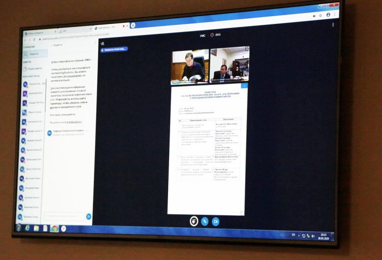 В онлайн-встрече приняли участие проректоры и руководители структурных подразделений университета. В течение двухчасового общения ректор и проректоры ответили на вопросы о порядке приёма экзаменов и защиты выпускных квалификационных работ в дистанционном формате, дальнейшем режиме работы университета, материальной поддержке преподавателей и стимулировании их научной и публикационной активности.