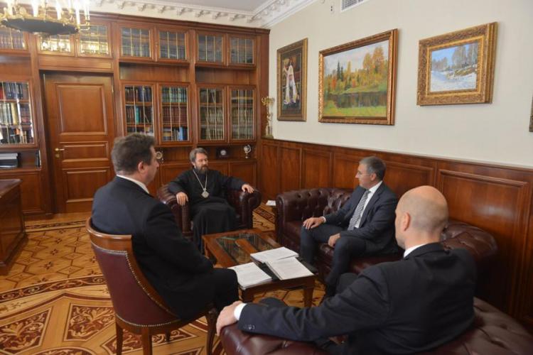 В рамках встречи митрополит Иларион рассказал о деятельности возглавляемых им структур, относящихся к научно-образовательной сфере, Дитрий Шмонин обрисовал текущую работу ассоциации по развитию межвузовского взаимодействия в сфере теологии, обратив внимание на то, что проведение IV всероссийской научной конференции «Теология в научно-образовательном пространстве: задачи и решения» впервые запланировано с широкой возможностью удаленного подключения участников на трех федеральных площадках, в крупнейших университетских центрах – в Казани, Санкт-Петербурге и Москве.