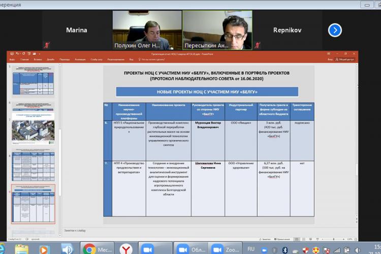 Заседание проходило в режиме онлайн под руководством ректора НИУ «БелГУ», профессора Олега Полухина. Проректор по науке Николай Репников ознакомил с планом расходования средств гранта из федерального бюджета на выполнение Программы деятельности НОЦ «Инновационные решения в АПК» на 2020 год. По словам Николая Ивановича, средства федеральной субсидии будут распределены по нескольким направлениям, в частности, пойдут на разработку и внедрение образовательных программ, программ дополнительного профессионального образования, повышение квалификации участников НОЦ, стажировки, приобретение оборудования, мультимедийной техники, содержание и оснащение Центра развития компетенций.