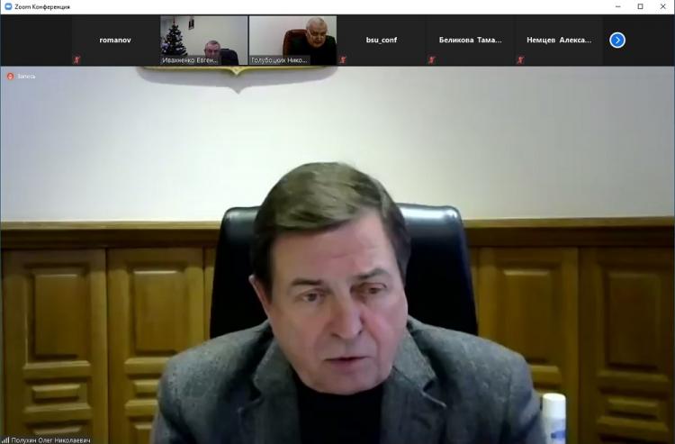 Заседание проходило в режиме онлайн под руководством ректора НИУ «БелГУ», профессора Олега Полухина. Об организации учебного процесса в условиях повышенного риска распространения новой коронавирусной инфекции COVID-19 доложил проректор по образовательной деятельности Александр Маматов. По словам Александра Васильевича, занятия проводятся в смешанном формате с преимущественным дистанционным обучением. Для проведения зачётов, консультаций и экзаменов в режиме видеоконференцсвязи в университете подготовлены аудитории-студии. Ректор обратил особое внимание на качество ведения образовательной деятельности в дистанционном формате и дал поручение проработать возможные варианты дополнительных занятий по тем дисциплинам, где высока доля практической подготовки.