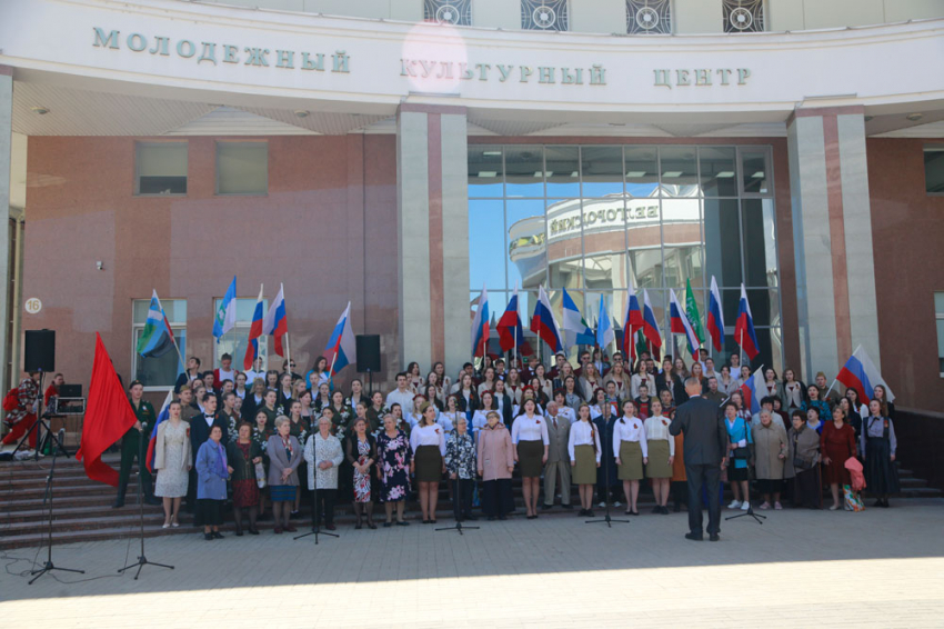 Также в этот день академический хор Белгородского госуниверситета, бывшие преподаватели вуза – ветераны труда, труженики тыла и дети войны – присоединились к всероссийской акции «Голос Победы». Объединённый хор в составе ста человек исполнил на университетской площади песню «День Победы».