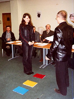 Третий этап – интеллектуальная игра «Умники и умницы», в которой команды, сформированные из представителей каждого факультета, соревновались между собой, отвечая на вопросы, составленные по работам философов эпохи Возрождения. Студент, правильно ответивший на вопрос, получал орден Умника, а набравший 3 ордена выходил в финал. После упорной борьбы в финале места распределились следующим образом:
