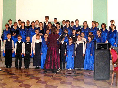 Руководитель Светлана Борисовна Клеменко рассказала, что занимаются пением дети от 3 до 18 лет, и это не мешает им создавать внутри коллектива свою атмосферу, свой особый мир, полный гармонии, понимания, любви к искусству. Репертуар очень разнообразен, в него входят как духовные, так и светские композиции. В этот день преимущественно звучали песни композитора Крылатова, например неизменный гимн надежды, веры, стремления к прекрасному – композиция из кинофильма «Гостья из будущего» – «Прекрасное далеко».