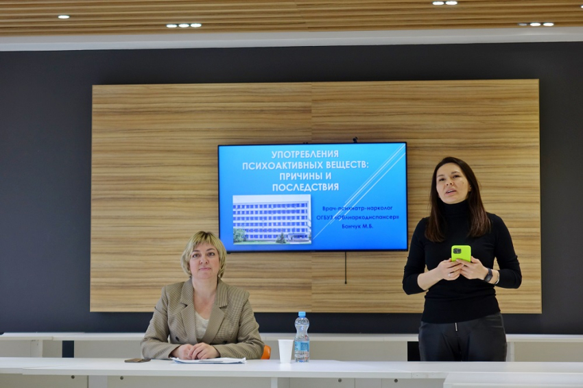 В Студенческом офисе НИУ «БелГУ» состоялась встреча-лекция с врачом психиатром-наркологом Марией Бончук. Мероприятие прошло в смешанном формате, всего в нём приняло участие порядка 110 человек. Темой встречи стали причины и последствия употребления психоактивных веществ. В роли модератора выступила директор Центра молодёжных инициатив НИУ «БелГУ» Наталья Еранова.
