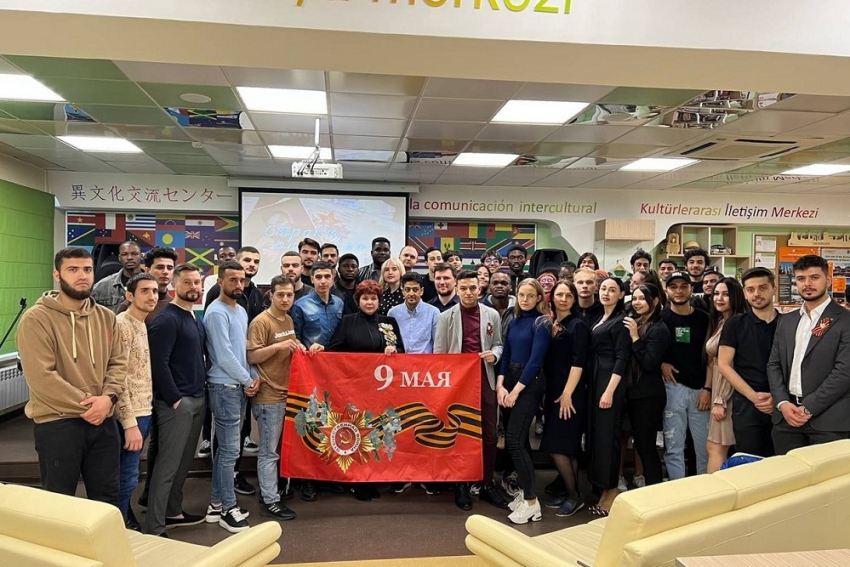 В рамках цикла патриотических мероприятий в Центре межкультурной коммуникации доцент кафедры русского языка, профессионально-речевой и межкультурной коммуникации, кандидат исторических наук, куратор землячества Узбекистана Анастасия Стржалковская провела информационно-просветительский час для иностранных студентов. Обучающимся из разных стран объяснили, почему День Победы так значим для каждого жителя России.