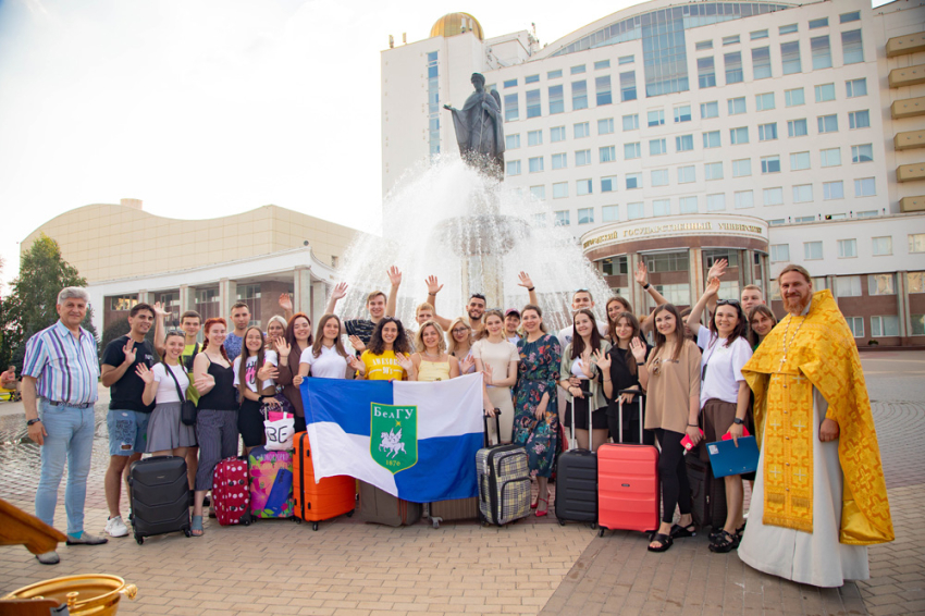 На благополучную дорогу и пребывание на фестивале студентов и сопровождающих благословил настоятель домового храма НИУ «БелГУ» протоиерей Роман (Пивнев), который прочитал молитву и окропил присутствующих святой водой.