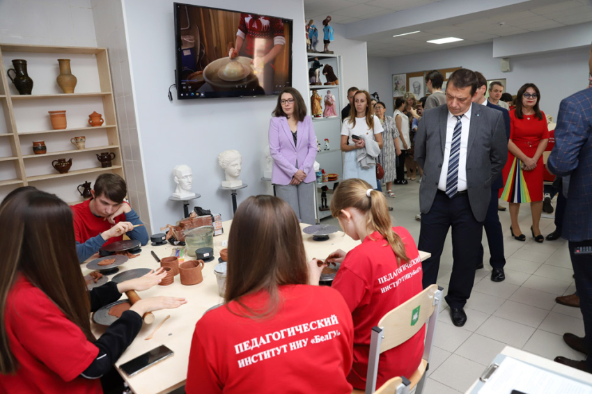 В торжественной церемонии открытия мастерской современного искусства «АРТ-настроение» приняли участие исполняющая обязанности ректора НИУ «БелГУ» Евгения Карловская, и.о. проректора по качеству и дополнительному образованию Владимир Шаповалов, председатель Белгородского регионального отделения организации «Союз художников России» Юрий Чернышов, кандидат искусствоведения, старший научный сотрудник Белгородского государственного художественного музея Наталья Гончаренко, представители Борисовского завода керамики и художница Наталья Зорова.