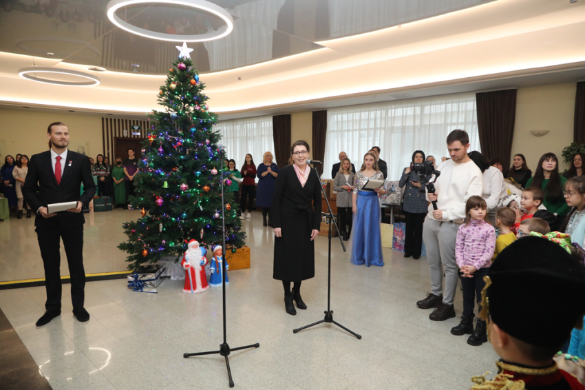В новогоднем утреннике приняли участие дети из социальных учреждений, многодетных семей, семей участников СВО. Юных гостей поздравила и.о. ректора НИУ «БелГУ» Евгения Карловская. Евгения Анатольевна отметила, что ежегодно к акции присоединяются преподаватели и сотрудники вуза, социальные партнёры, жители Белгорода и области, которые выполняют желания не только детей, но и нуждающихся взрослых, пожилых людей.