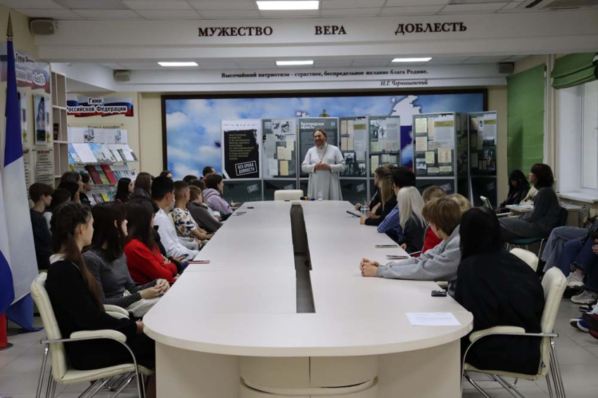 Настоятель храма Архангела Гавриила, домового храма НИУ «БелГУ», протоиерей отец Роман, глава большой православной семьи, говорил со студентами о ценности нравственного качества – верности.