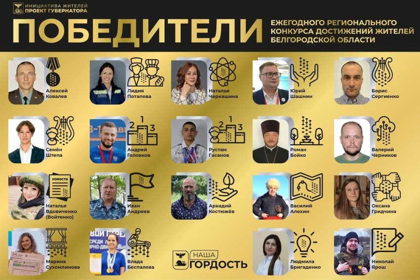 Конкурс «Наша гордость» учреждён Правительством Белгородской области для выявления, популяризации и продвижения достижений жителей Белгородской области.
