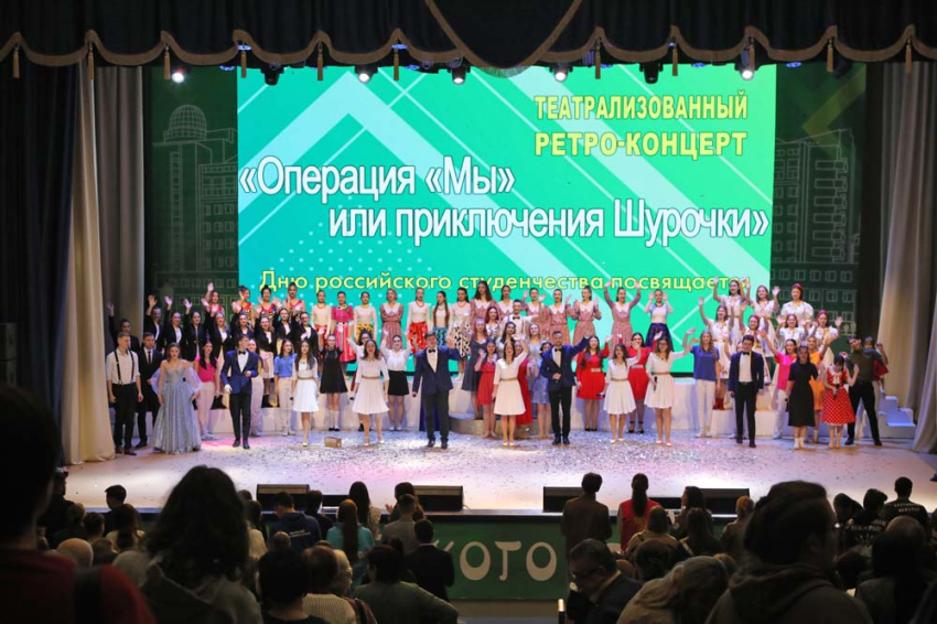 В концертном зале состоялся театрализованный концерт «Операция «Мы» или приключения Шурочки». Студентов с праздником поздравила ректор Евгения Карловская.