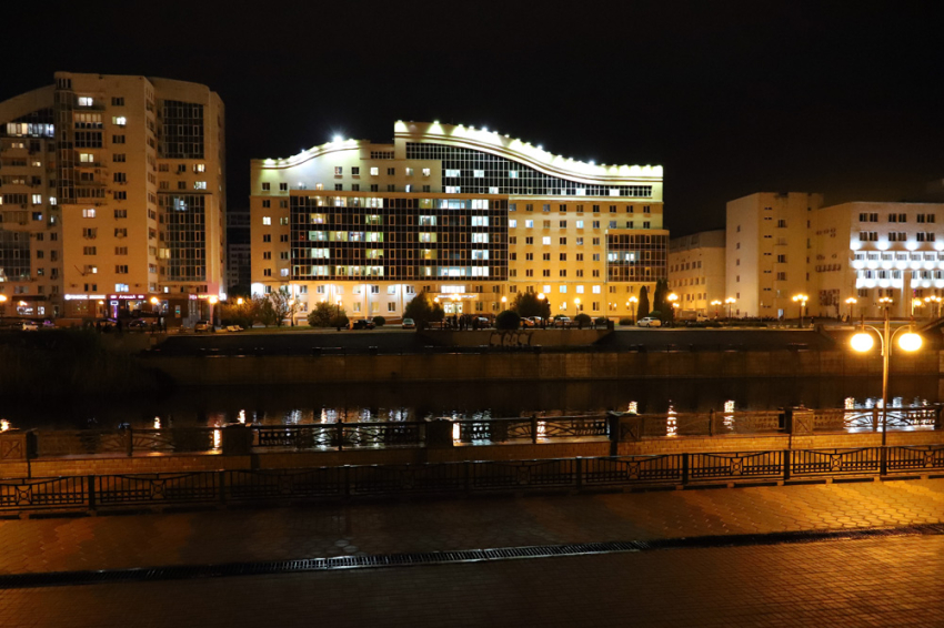 В рамках акции в преддверии 9 Мая поздним вечером фасад здания общежития №4 на ул. Победы осветился ярким светом окон, и все присутствующие смогли увидеть световую инсталляцию – цифру 80.