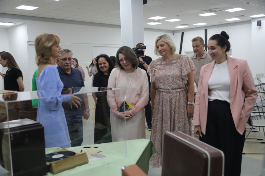 Евгения Анатольевна рассказала о своей поездке в музей-заповедник «Прохоровское поле», где работает экспозиция, посвящённая легендарным военачальникам. Среди экспонатов – музыкальные проигрыватели и грампластинки тех лет.