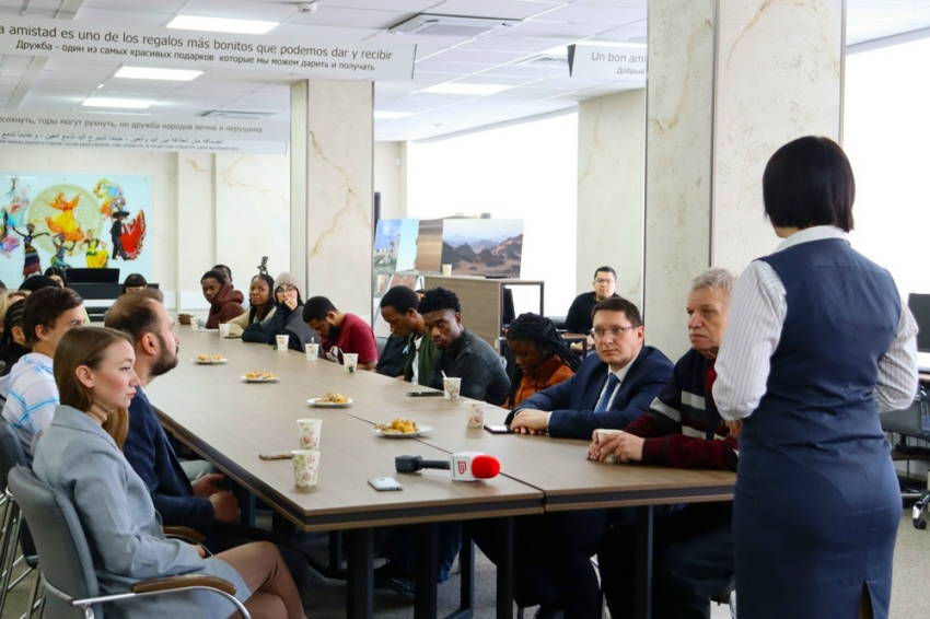 Урок мужества собрал в Центре дружбы народов сотрудников НИУ «БелГУ» и студентов из России, Алжира, Анголы, Буркина-Фасо, Египта, Индонезии, Камеруна, Марокко, Нигерии, Туркменистана, Узбекистана, Чада, Эквадора.